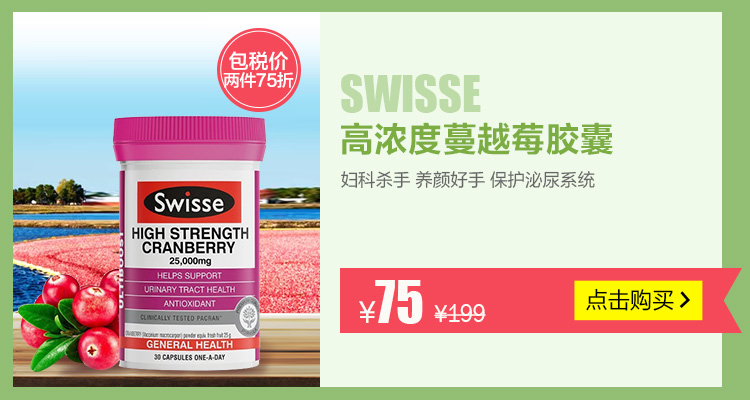 澳洲进口Swisse蔓越莓胶囊25000mg 高浓度精华 美容养颜 30粒*2