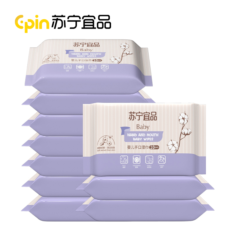 苏宁宜品婴儿手口湿巾便携湿巾10抽*10包 不含荧光剂 母婴适用