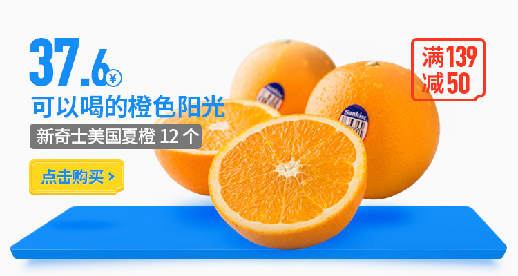 【苏宁生鲜】新奇士美国夏橙4个160g以上/个 橙子 新鲜时令水果